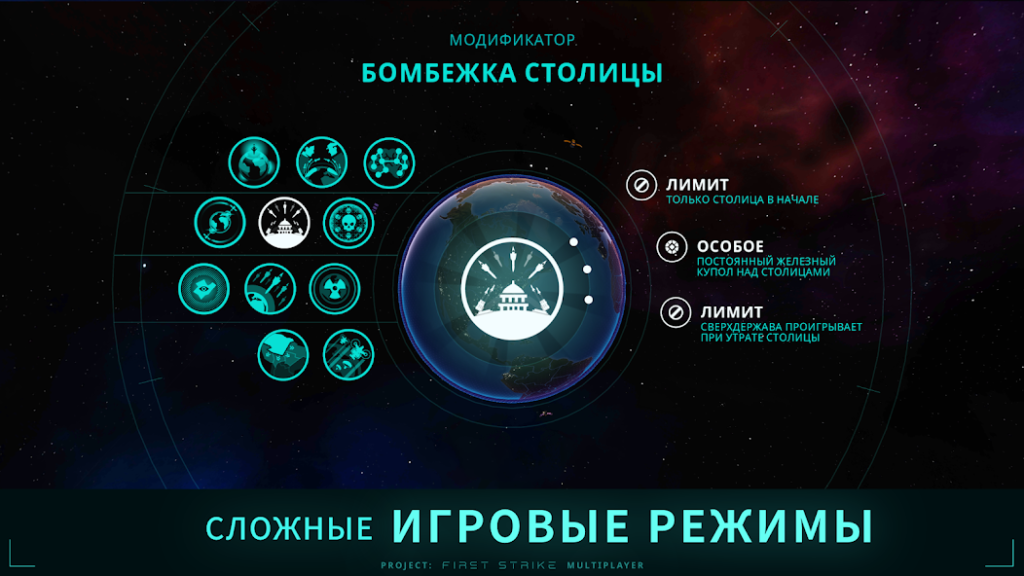 - Глобальная стратегическая карта с возможностью управления ядерными державами.