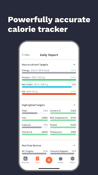 Calorie Counter by Cronometer — мощный инструмент для тех, кто решил взять под контроль свой рацион и здоровье. Этот трекер быстро анализирует всё, что вы едите, и помогает следить за поступлением калорий, витаминов, белков и других нутриентов.