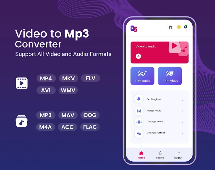 Video to Mp3 Converter / Конвертер видео в Mp3 — это приложение предназначено для быстрой конвертации видео в аудиофайлы формата MP3. Основная функция — извлечение звука из видео, что позволяет пользователям сохранять любимые треки без видео-сопровождения. Оно полезно для тех, кто хочет экономить место на устройстве и создавать персонализированные аудиоклипы.