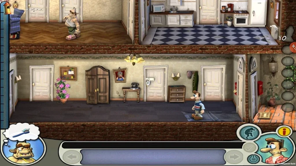 Геймплей строится на тактическом планировании: вы наблюдаете за соседом, ждёте нужного момента и в правильный миг запускаете розыгрыш. Неудачная попытка — и сосед ловит вас с поличным. Каждый уровень требует внимания к деталям и понимания окружающей обстановки. Атмосфера игры пронизана чёрным юмором и ностальгией по оригиналу, но с актуализированной графикой и управлением для сенсорного экрана.