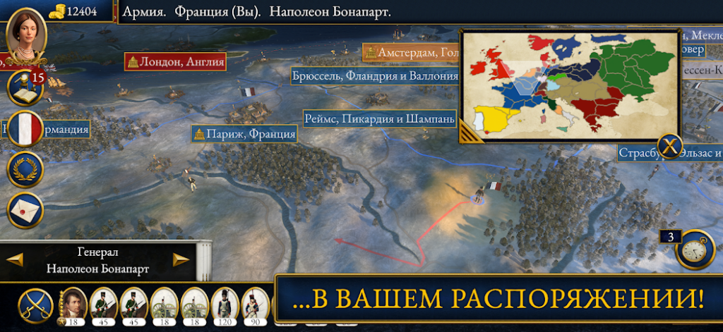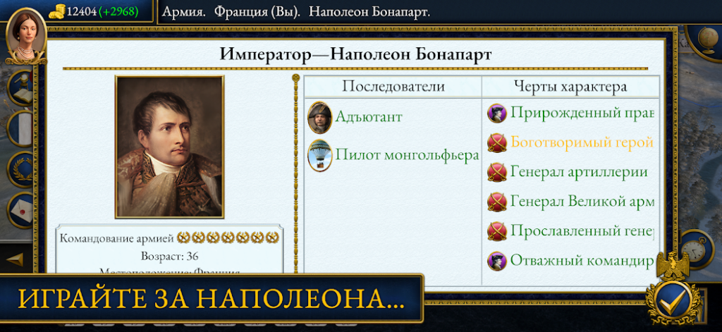 Total War: NAPOLEON — это портирование легендарной компьютерной стратегии на мобильные платформы. Игра объединяет два режима: пошаговую кампанию, где вы управляете государством, политикой и экономикой, и тактические батальи в реальном времени, где решаются судьбы войн. Вы выбираете одну из четырёх наций — Францию, Россию, Британию или Австрию — и начинаете путь к мировому господству.
