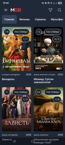 MDBTV особенно хорошо проявляет себя как справочник. Если вы часто забываете названия фильмов, путаетесь в сезонах сериалов или хотите заранее составить список для просмотра, приложение решает эти задачи без лишних сложностей.