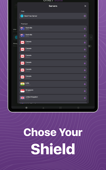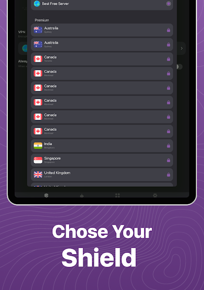 - Автоматическая активация защиты при подключении к сетям, обеспечивая мгновенную приватность.