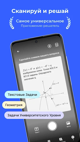 После запуска приложение встречает пользователя предельно простым интерфейсом — по сути, это просто экран камеры с рамкой. Никаких сложных меню. Пользователь наводит камеру на печатное или аккуратно написанное от руки уравнение, и происходит магия: приложение за доли секунды распознает символы и выводит на экран готовый ответ. Этот первый «вау-эффект» — мгновенное получение правильного ответа на сложную задачу — является главной приманкой приложения.