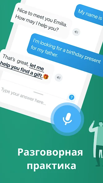 Пользователю предлагается слушать, повторять фразы и отвечать на вопросы. Есть режимы для аудирования, чтения и говорения, с мгновенной обратной связью. Удобства включают ежедневные напоминания и статистику прогресса, чтобы мотивировать регулярные занятия.