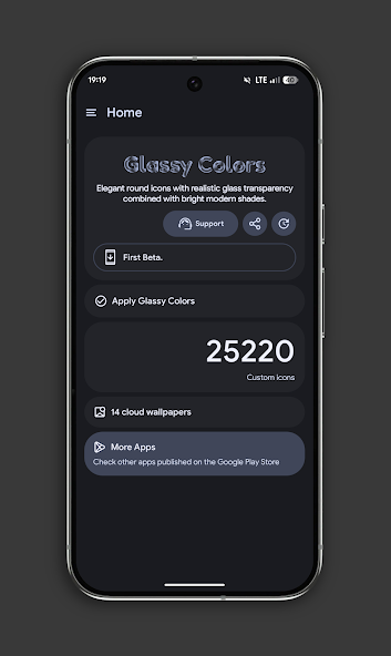 Отличительная черта пакета — не статичная библиотека, а живой экосистемный подход. Обои обновляются с каждым патчем, добавляя сезонные тематики или коллекции под конкретные цветовые палитры. В сравнении с конкурентами типа Crayon Icon Pack, где фоновые изображения остаются неизменными годами, здесь вы получаете свежий контент. Дополнительно реализована поддержка adaptive icons для Android 12+, что позволяет иконкам менять форму под настройки системы (круглые, квадратные, скруглённые), сохраняя при этом стеклянную текстуру.