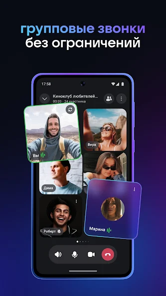 Приложение работает плавно на широком диапазоне устройств Android и поддерживает стандартные форматы общения, обеспечивая стабильность даже при нестабильном соединении.