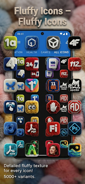 Внутри панели управления Fluffy 3D вы найдете не только сами значки, но и удобный поиск по категориям. Это позволяет быстро найти нужную иконку вручную, если автоматическая замена по какой-то причине не сработала. Кроме того, мягкий 3D-дизайн отлично сочетается с самыми разными типами обоев — от пастельных тонов до природных пейзажей. Экспериментируя с размером иконок в настройках лаунчера, вы сможете добиться идеальной композиции рабочего стола.