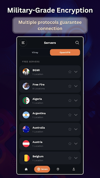 Система автоматически выбирает оптимальный сервер в зависимости от вашего региона, но вы можете вручную выбрать альтернативные точки подключения. Графическое отображение статуса соединения помогает следить за активностью и стабильностью канала. Приложение работает с минимальным потреблением батареи благодаря оптимизированному коду.