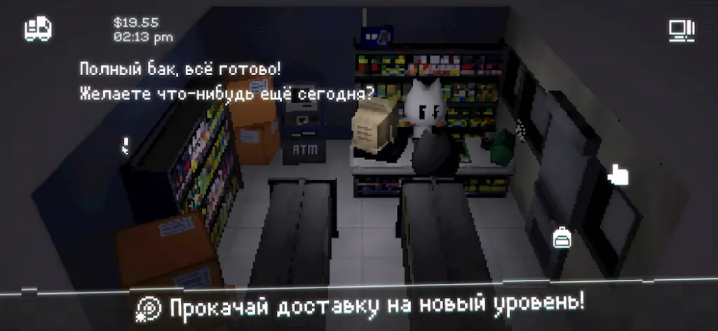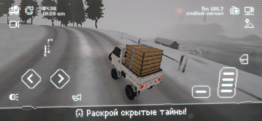 Ретро-визуал работает на атмосферу, а не против неё. Пиксельная графика позволяет фокусироваться на дороге и диалогах, не отвлекаясь на технические детали. Звуковой дизайн усиливает погружение: шум мотора, скрип тормозов, радио с местной музыкой и новостями.