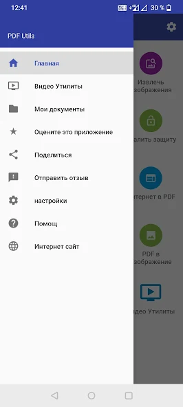 Интерфейс приложения выполнен в минималистичном стиле, где каждая плитка в главном меню отвечает за конкретное действие. Пользователю не нужно блуждать по сложным настройкам: достаточно выбрать нужный инструмент, указать файл из памяти Android-устройства и подтвердить действие. Такая логика взаимодействия делает работу интуитивной даже для новичков.