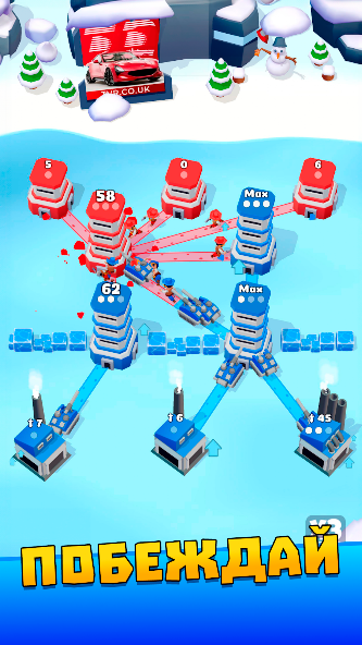 Tower War — это динамичная аркада, где игроку приходится быстро оценивать поле боя и принимать решения на ходу. Здесь важны не только сила, но и точный расчет: нужно перехватывать башни, усиливать свои позиции и грамотно направлять отряды.